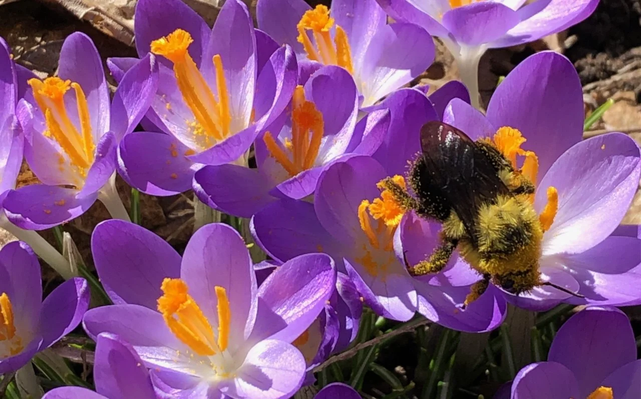 One of my favorite memories from my previous garden in the Hudson Valley happened one bright March morning, when I came out to find the crocuses with their faces wide open to the sun and one single bumblebee rolling and tipping himself from flower to flower as if he were drunk on delight.
